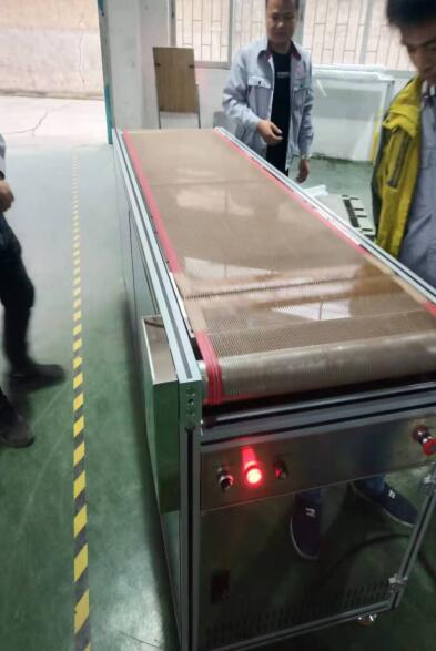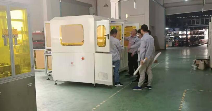 本次出貨的雙平臺全自動絲印機包括四個部分:上料結(jié)構(gòu)區(qū)、CCD視覺對位區(qū)、全自動印刷區(qū)、制品搬送區(qū)另再配有連接隧道爐的自動流水線。